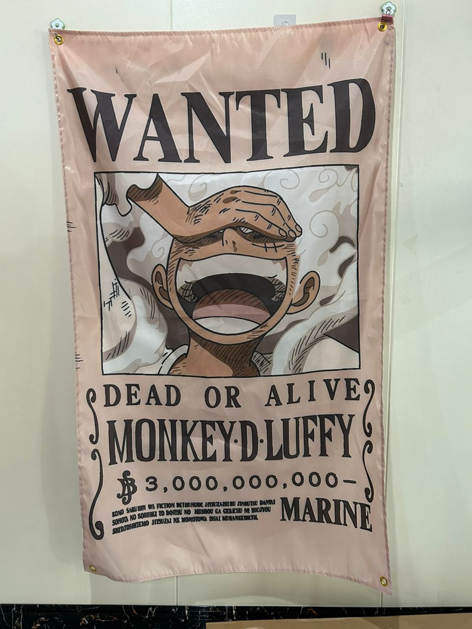 Design: Bold and colorful, featuring Monkey D. Luffy's wanted poster with his signature straw hat and determined expression.